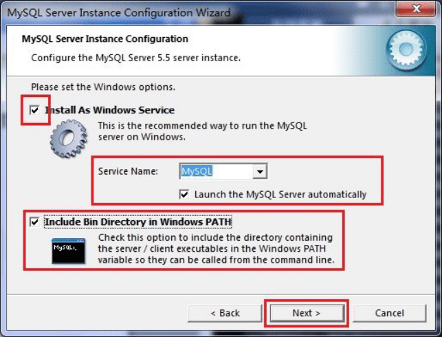 15、在打开的页面中选择是否将mysql安装为windows服务,还可以指定Service Name(服务标识名称),是否将mysql的bin目录加入到Windows PATH(加入后,就可以直接使用bin下的文件,而不用指出目录名,比如连接,“mysql –u username –p password;”就可以了,单击“next”继续配置,如图所示: