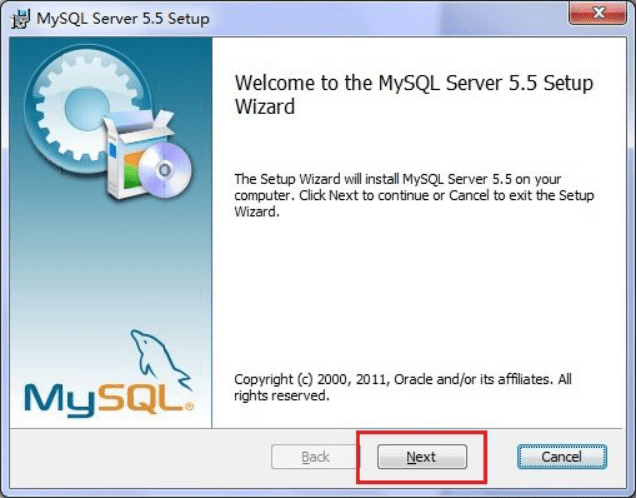 1、首先单击MySQL5.5.21的安装文件,出现该数据库的安装向导界面,单击“next”继续安装,如图所示