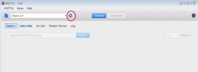 此处我们不使用具体的硬件设备来与物联网平台进行交互,我们可以使用MQTT.fx软件来模拟相关的硬件设备,让该设备与阿里物联网平台进行通信。