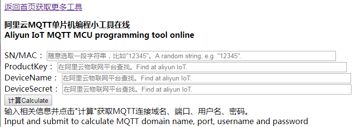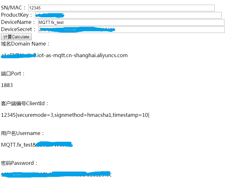 点击计算Calculate后会生成相关的需要填入到MQTT.fx的配置项