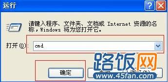 1、由于需要用到命令,因为我们首先要调出电脑的命令对话框,方法是使用组合快捷键:Windows + R键,打开运行操作框,然后在打开后面输入 cmd ,完成后,点击底部的确定即可打开CMD命令操作框了,如下图: