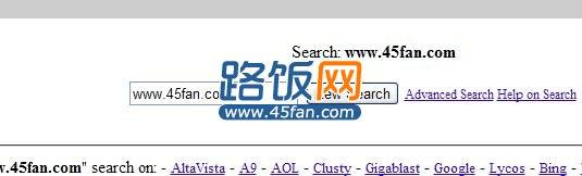 2、在搜索框中输入你要查询的网址,如笔者的网站是www.45fan.com,输入完成后,点Search。由于笔者的网站没有被收录,故查询不到结果。