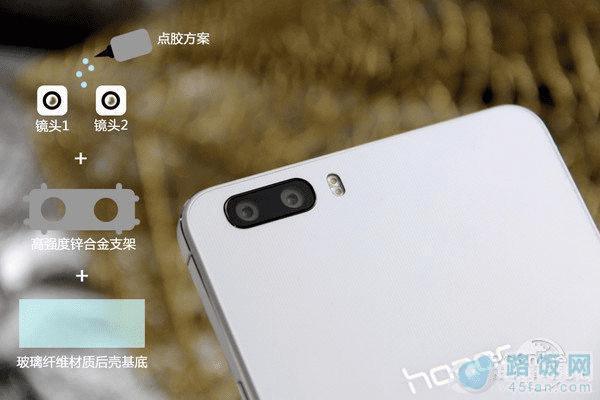 仿生双镜头并非1+1=2的简单组合,为了确保影像捕捉时的绝对同步,两颗800万像素后置镜头必须严格处于同一平面,模组的相对位置需要极其稳定,角度必须毫厘不差,这对架构的强度和工程师的调试无疑是一项艰巨的挑战。为了实现对人眼的高度仿生,达到双镜头设计所需,荣耀不惜在相机模组中采用了高强度锌合金框架,配合顶尖的生产线完成93道主要工序,才使两颗镜头的角度精度控制在0.3度以内,距离精读控制在0.5毫米以内,最终获得1300万像素的绝佳表现。