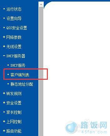 进入无线路由器的设置页面,在左侧栏目中打开DHCP服务器,选择客户端列表,这时,在页面的右侧就可以看到目前家里所有已经连接上WiFi的设备,以及每个设备所对应的物理地址了,可以直接用鼠标全部复制黏贴到记事本上,方便后面的操作,建议一次性把家里所有需要用到WiFi的设备都通通连接上,一次性设置好,避免以后有新设备加入还要再进来添加,不过也不麻烦,自己把握好就行。