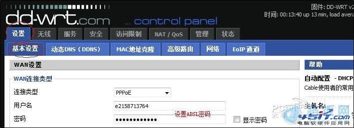 第七步:让我们上网咯依次点击“设置”——“基本设置”。在连接类型中选择宽带接入方式,用的是ADSL所以就选用了PPPOE的方式。接着在用户名和连接密码中填入运营商给出的连入信息,点击页面最下方的“应用”即可。如图九