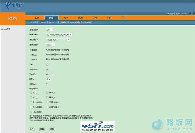 如果你的HG330没有连接电话,可以跳过这一步。如果你连接有电话,需要再“新增一条连接”,服务模式选择“VOIP”,连接类型默认为“Route”,选择DHCP,启用VLAN、VLAN ID以及802.1p参数参照备份中的1_TR069_VOIP_R_VID_46参数填写(如图9),点击保存。