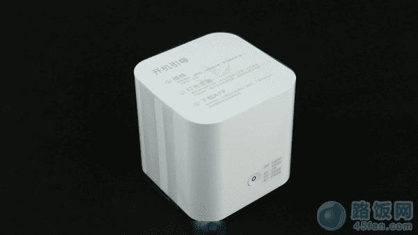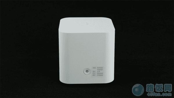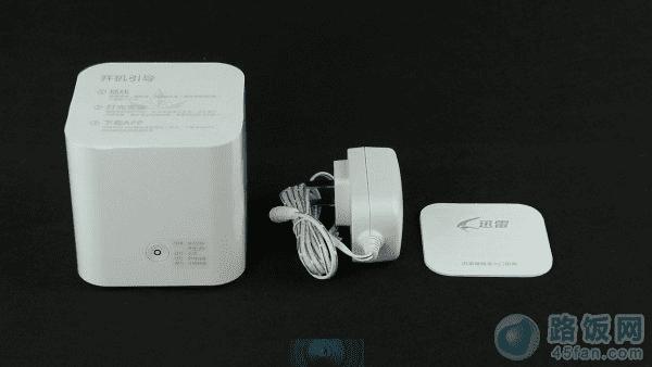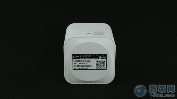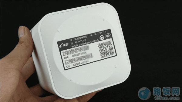 圆形底部微凸,有4只很小的垫脚。铭牌上的二维码用于绑定机器和迅雷账号。