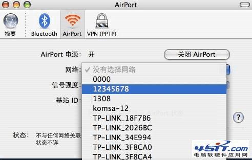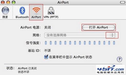 STEP2:选择“AirPort”,进入WiFi设置页面。点击“打开AirPort”开启无线开关,搜索无线信号,如下图所示。