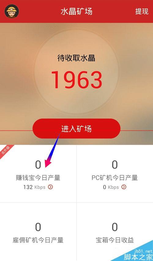 1、查看工作状态,只能通过手机APP来完成,你可以扫描底部的二维码安装,绑定迅雷帐号登录水晶矿场手机端,在主界面你可以看到赚钱宝的工作状态