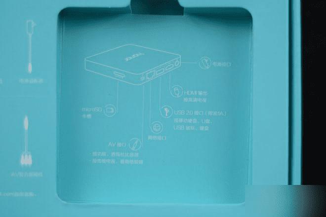 先将荣耀盒子拿出来,可以看到下方的包装盒上有一个简易的说明,向用户介绍了荣耀盒子周身各个接口的作用。