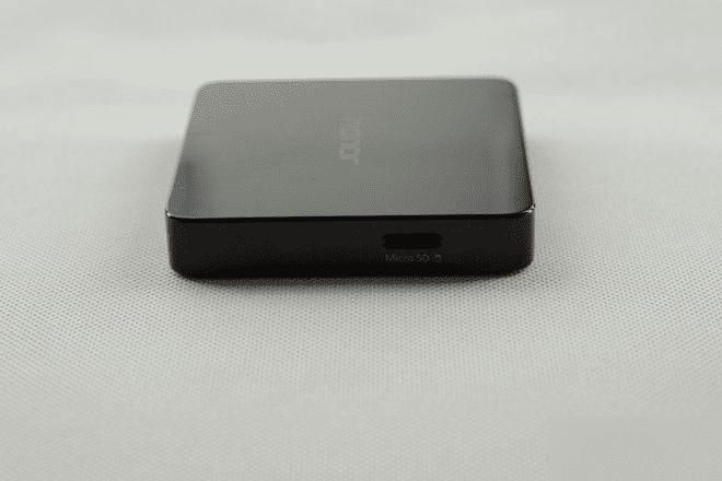 荣耀盒子右侧还有一个MicroSD(TF卡)接口,可以插入最大64GB的扩展卡。由于荣耀盒子使用的是Android 4.4系统,因此可以安装不少应用,这时我们就需要插入扩展卡来增加可用空间。