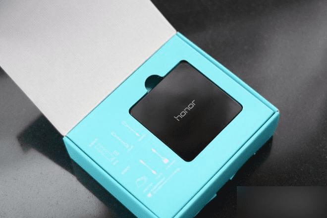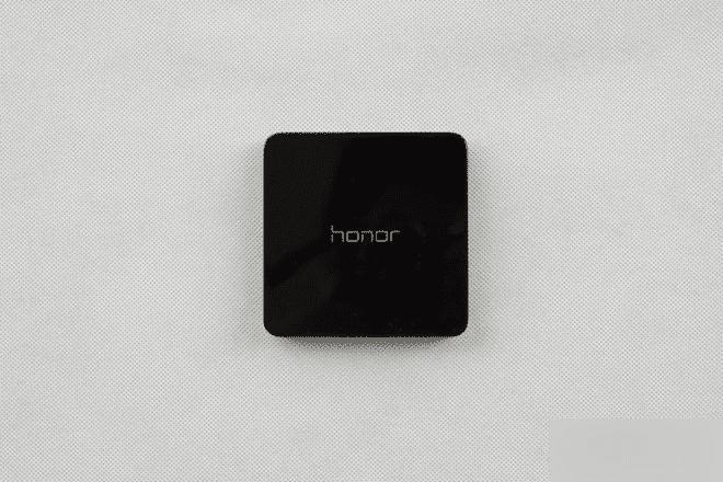 打开包装盒,就可以看到荣耀盒子正静静躺在里面。荣耀盒子的长宽均为85毫米,只有手掌般大小,比想象中要小得多。