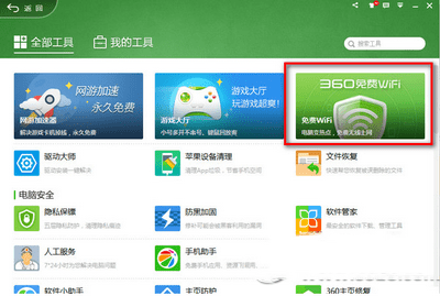 第二步、在“全部工具”处找到“360免费WifI”并点击。