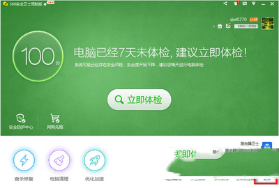 第一步、打开360安全卫士,点击右下角“功能大全”旁边的“更多”,电脑上没有360安全卫士的朋友请下载安装。(若是台式机请自备无线网卡器)