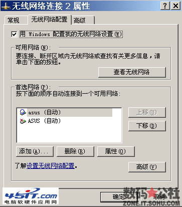 1.打开无线连接的属性,选择"无线网络配置"