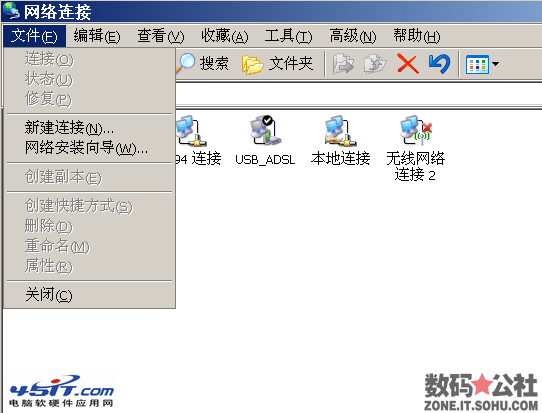 在网络连接里,文件——网络安装向导。如下图所示。