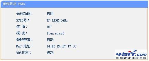 此时TL-WDR4310A和B在5GHz频段的WDS就已经设置完成了,2.4GHz和5GHz的无线终端设备均可使用TL-WDR4310的无线信号进行上网。