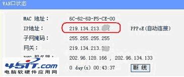 重启完成后进入管理界面(192.168.1.1),打开运行状态,等待1-2分钟,正常情况下此时看到WAN口状态——IP地址栏有具体的参数而不是0.0.0.0,说明此时路由器已经连通互联网了。