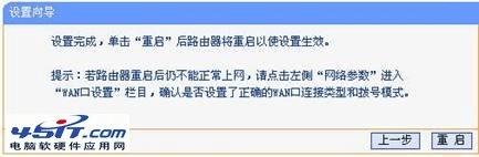 5、完成设置。提示重启路由器,点击重启,如下图所示。