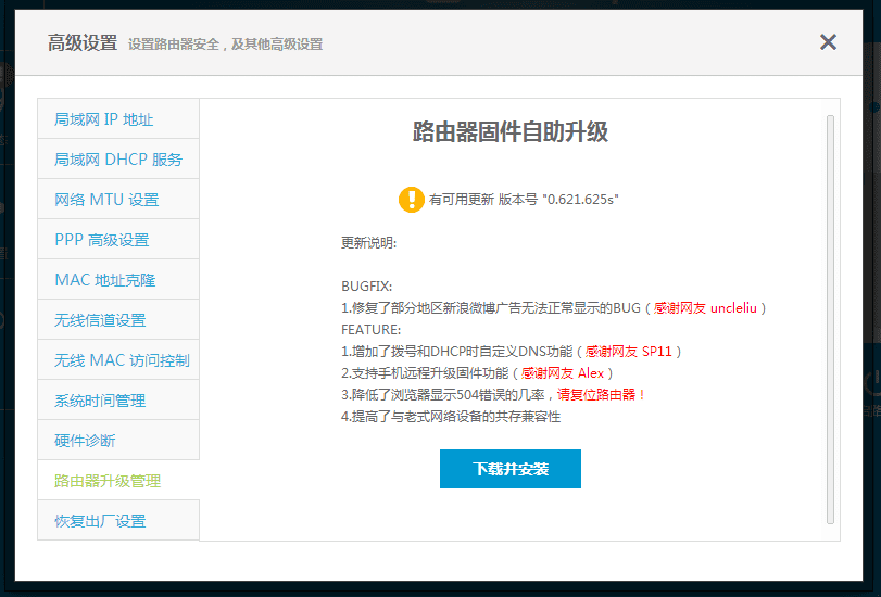 ▲令人意外的是,这款路由器做到了OTA升级,只需要动动鼠标就能升级,不像其它路由一样需要从本地上传固件文件。
