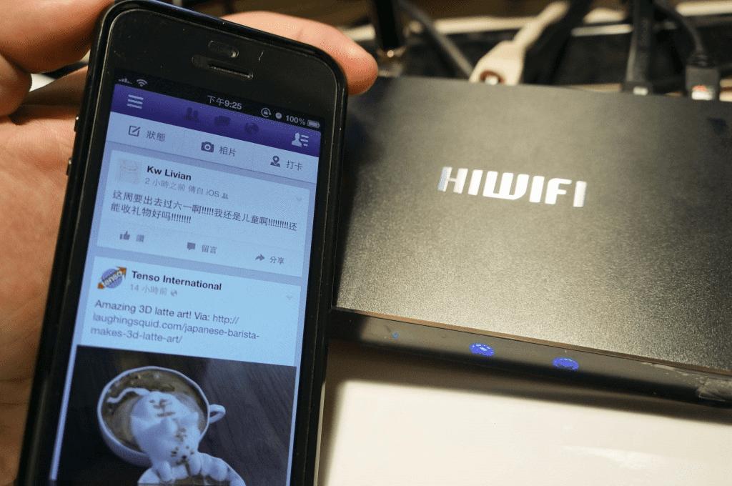 ▲设置并开启出国加速功能后,连接上路由的手机已经能够正常访问Facebook。