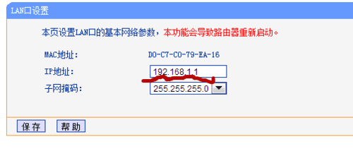 1、首先检查主、副路由器IP地址是否冲突(这里以192.168.1.1为例)会造成无法正常上网。这时根据我们桥接路由器时在DHCP服务器里设置的IP地址区间改写LAN设置里的IP地址。