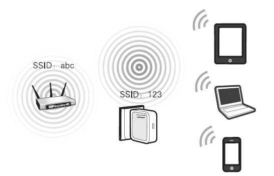 放大后的无线信号的名称和原来的无线路由器的无线信号名称一致,也就是2台无线路由器共用同一个无线网络名称(SSID)。