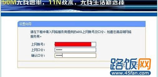 5、选择PPPOE拨号上网后就要填上网帐号跟密码,把你开设宽带时供应商给你提供的账号密码填上去,然后点击“下一步”。