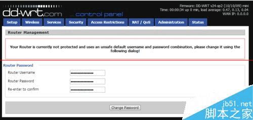 1、进入http://192.168.1.1,Router Username输入用户名,Router Password输入密码,Re-enter to confirm再次输入密码,输入密码后点击下方的图标保存(change password)