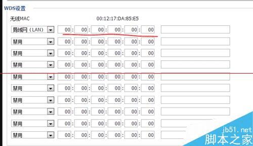 8、下面点击WDS,在下方图片画线处,输入主路由的m a c地址,输入完毕后点击应用,