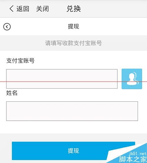 6、优金币是提现到支付宝帐号上,所以只需要输入支付宝帐号和姓名就可以提交