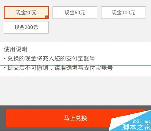 5、根据账户余额选择能够兑换的面额,然后点击[马上兑换]
