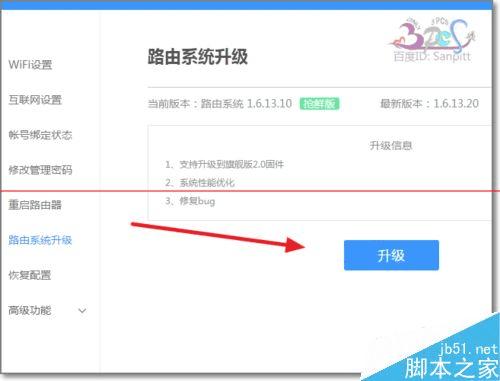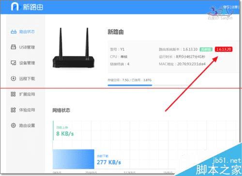 2、在路由器首页,版本号处有红色提醒有新版本,可以升级。