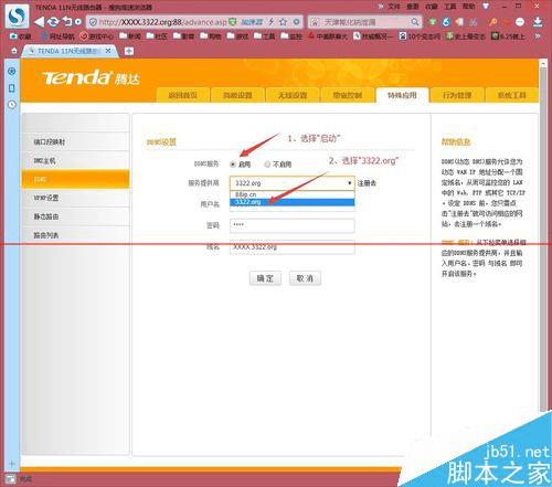 5、点击“启动DDNS服务”选择服务提供商“3322.org”如果没有账号的可以去3322注册一个,注册方法这里就不介绍了,看图5