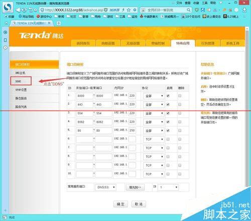 输入端口号,我习惯了用"88",只要运营商没封锁可以自己填,推荐用8081、8082,如果被运营商封锁了是连不进来的;ip地址栏默认不用去设置 0.0.0.0 ,点击"确定",设置完成。用手机/平板或PC输入你的3322动态域名+端口即可远程管理你的路由器了。