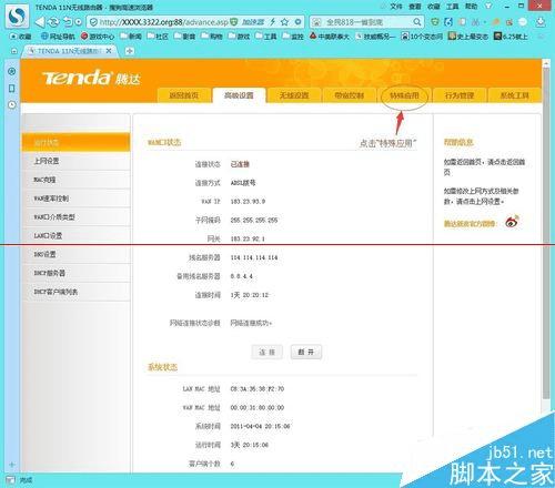 1、本设置方法经本人测试,只适用腾达W303R/W304R,其它路由按此方法设置,可能无法解决。