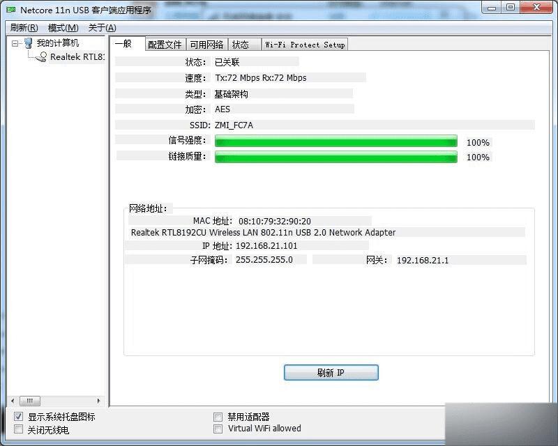 PC端使用的是300M无线网卡,室内连接信号强度和信号质量还不错。