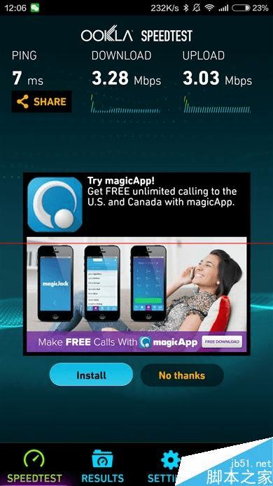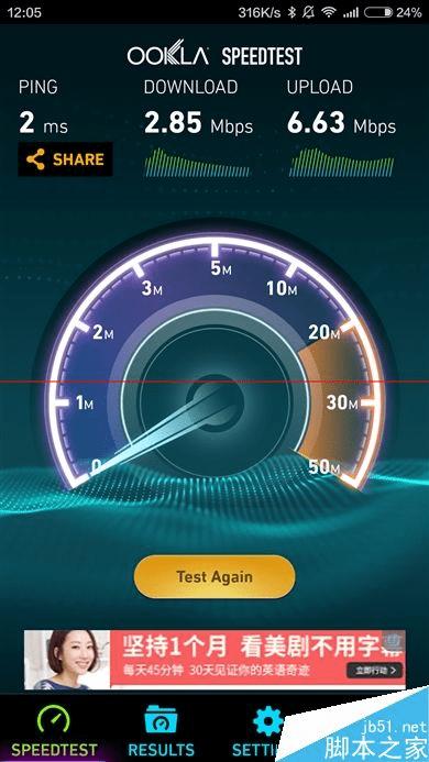 测速结果,在小米Wi-Fi放大器下,上传/下载速率分别是2.85/6.63Mbps,延迟2ms,而直连小米路由器的测速结果为3.28/3.03Mbps,延迟为7ms,反复测试数次之后基本上都是类似的结果。