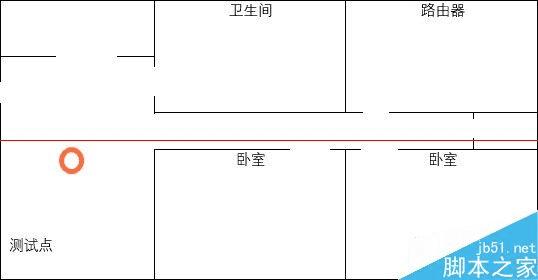 笔者租住的地方,面积大约是110平米,全新小米路由器放置在最里边的卧室中,而测试点则是在客厅靠近窗户的位置,和新小米路由器基本上构成了一条对角线,中奖需要穿越三堵墙。小米Wi-Fi放大器此时的位置在客厅的桌子上,也就是图中红圈处。