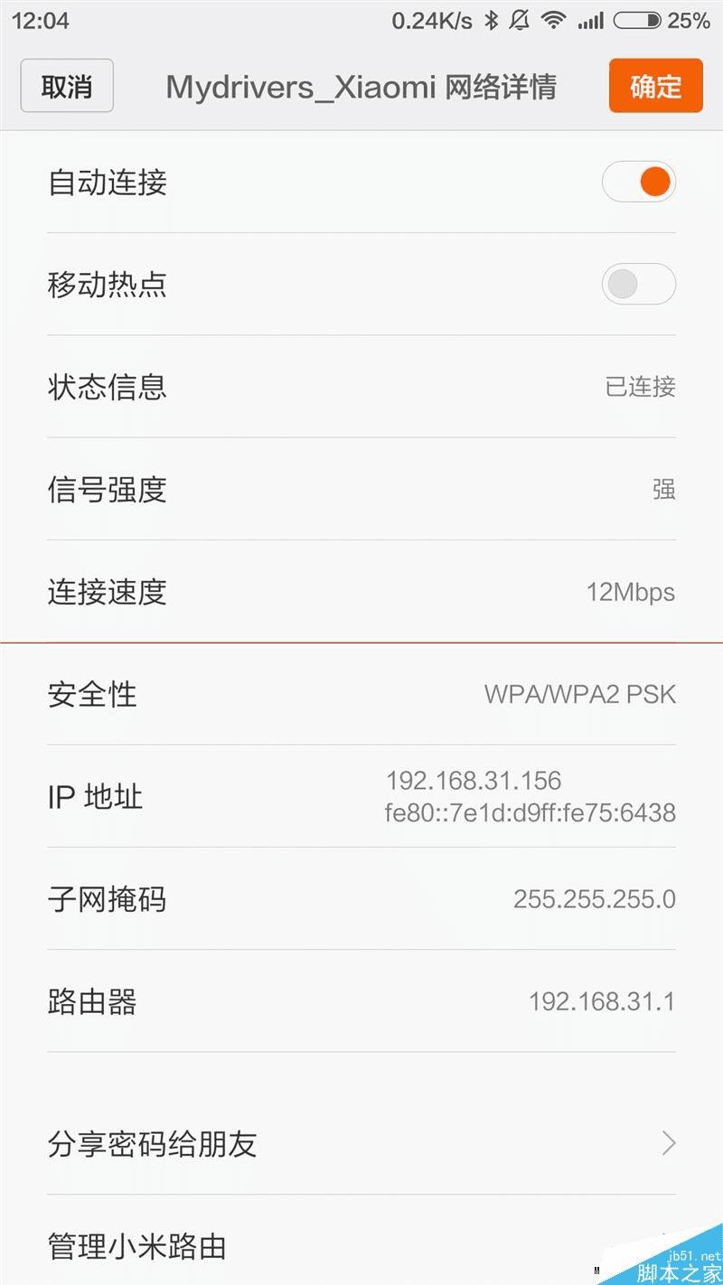 在测试点,小米路由器的信号强度则是12Mbps,差距很明显。