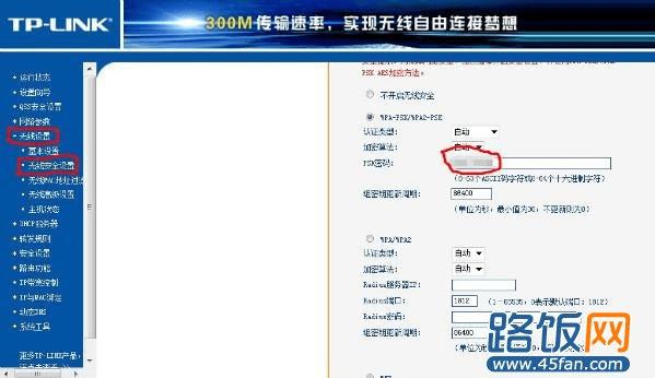 2、无线安全设置”,在“PSK密码”中填入自己的密码,完成后保存。