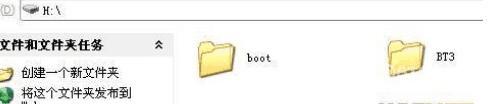 2、将刚才下载完成的bt3解压缩,复制到优盘,完成后会看到优盘目录下有两个文件夹,一个boot一个BT3。如下图: