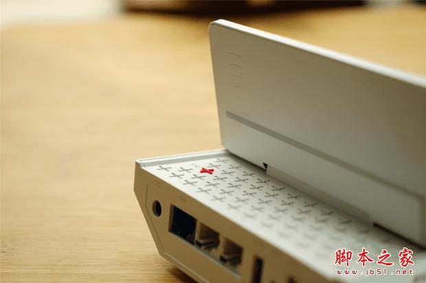 背部有三个条状的触角,用以稳固路由器的机身,起到防滑的作用。散热孔分布在机背的大部分区域,毕竟散热的状况会影响到路由器的稳定性和耐用性。京东的图标也在下面哦~