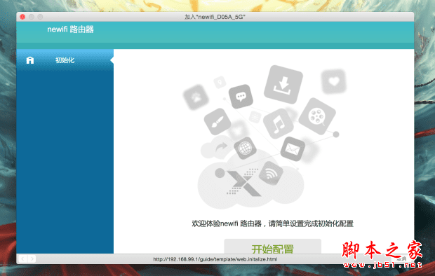 接通路由,连接好以后,在浏览器地址栏输入192.168.99.1或newifi.com,即可打开初始化页面,进行简单的设置厚就可以使用新路由 2 来上网了,引导的过程比较简单易懂,即使是新手也能够轻松完成设置。