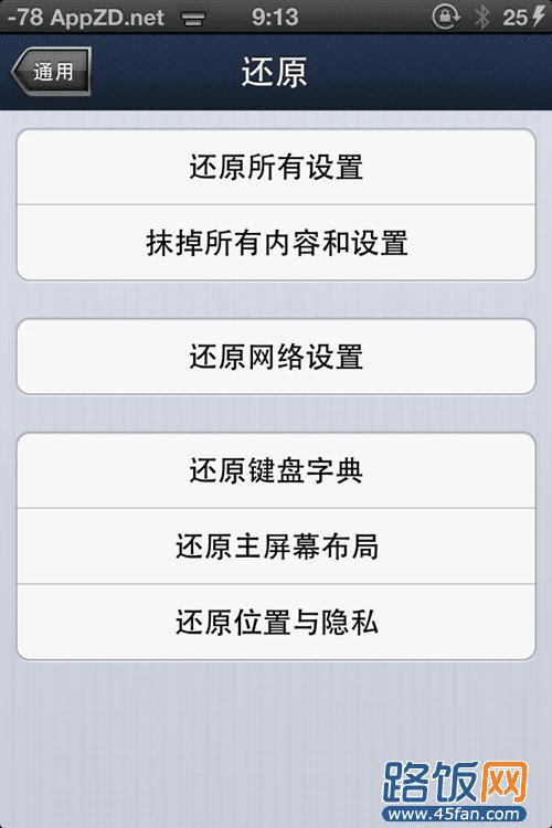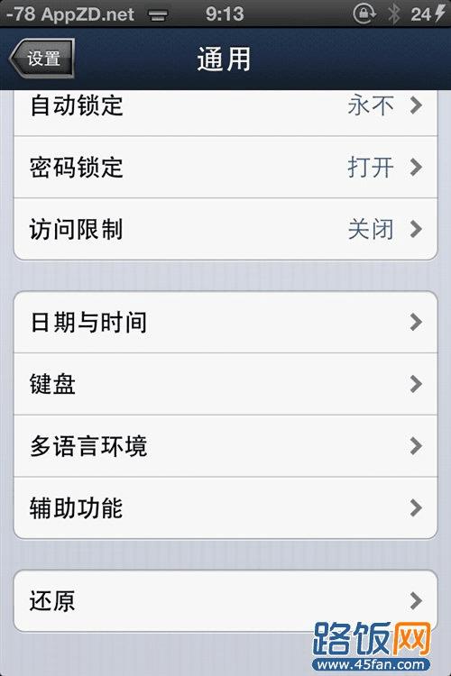 2:将滑动条拖至通用选项,然后选择还原,如下图所示: