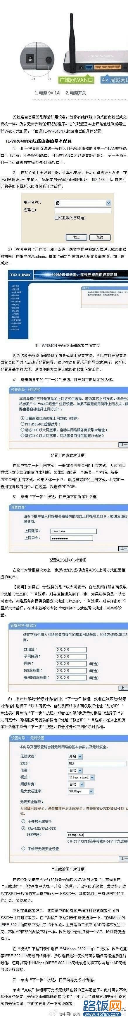宽带无线路由器是当今单位和家庭上网的必备设施,通过它可实现多机共享上网以及手机、PAD的wifi接入,但是如何设置路由器对一些人来说是个难题。其实没什么复杂的,简单几步就能学会,照着图中的教程操作一下就OK了(各种品牌型号的路由器设置方式大同小异),咱们这里以TP-Link WR-840N无线路由器为例。