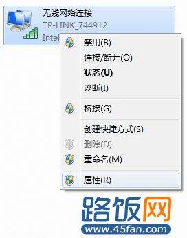 第二步:右击“无线网络连接” --- “属性”,如下图: