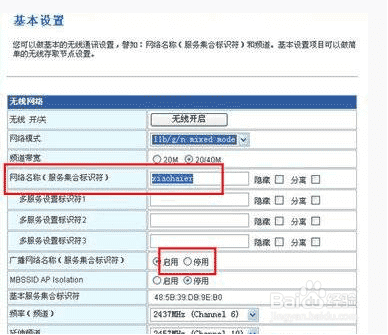 2、关闭SSID(网络名称)广播: