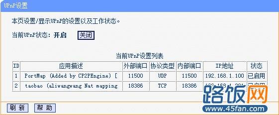 另外,小编建议把路由器的UPnP功能打开。在菜单“转发规则”---“UPnP的设置”---开启UPnP即可,如下图所示:
