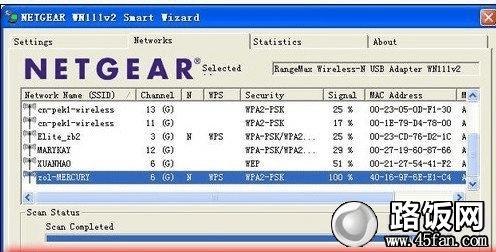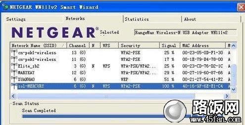 首先,在电脑上插入NETGEAR WN111无线网卡,它自带的安装驱动程序会自动安装,如下图的无线网络列表界面随后弹出,刷新它,然后选择需要你想连入的无线网络名称(SSID),比如本文以之前设置好的SSID为例,我选择“zol-MERCURY”,双击它,如下图。